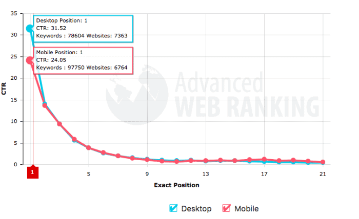 You can see how the top three search results have a huge average CTR. It’s over 30% in first position dropping to 10% in third position.