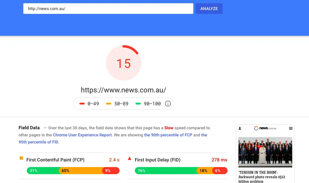 To see your site speed, go to Google’s PageSpeed Insights and type in your page URL.