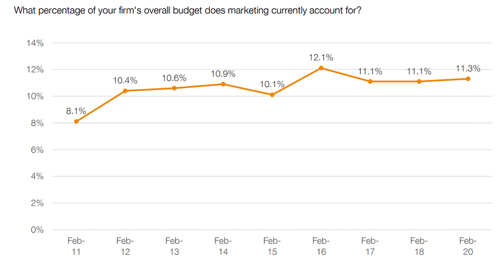 The average business spends 11.3% of its revenue on marketing: